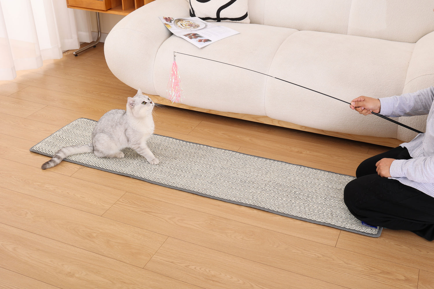 My cats absolutely enjoy scratching on this runner! It's really well-made and the catchy boho design goes well with my home decor - in fact my friends didn't even know it was for cats until I told them! Laid flat, my larger kitty likes to lounge on it while the smaller one does her own yoga stretches on the other side. I recently used it as an L-shape and my smaller kitty went bonkers! Definitely a must have runner!