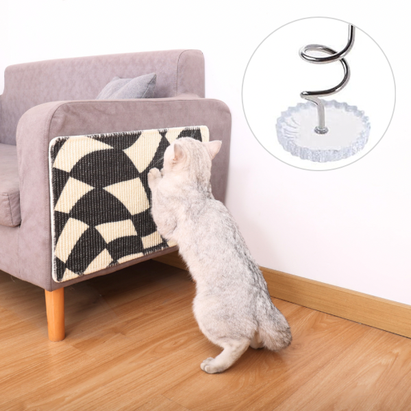 The package includes 8 free adhesive pads to securely fix the scratching mat on the floor's smooth horizontal surface. Alternatively, you can use heavy objects like your sofa to keep the mat firmly in place, ensuring stability.